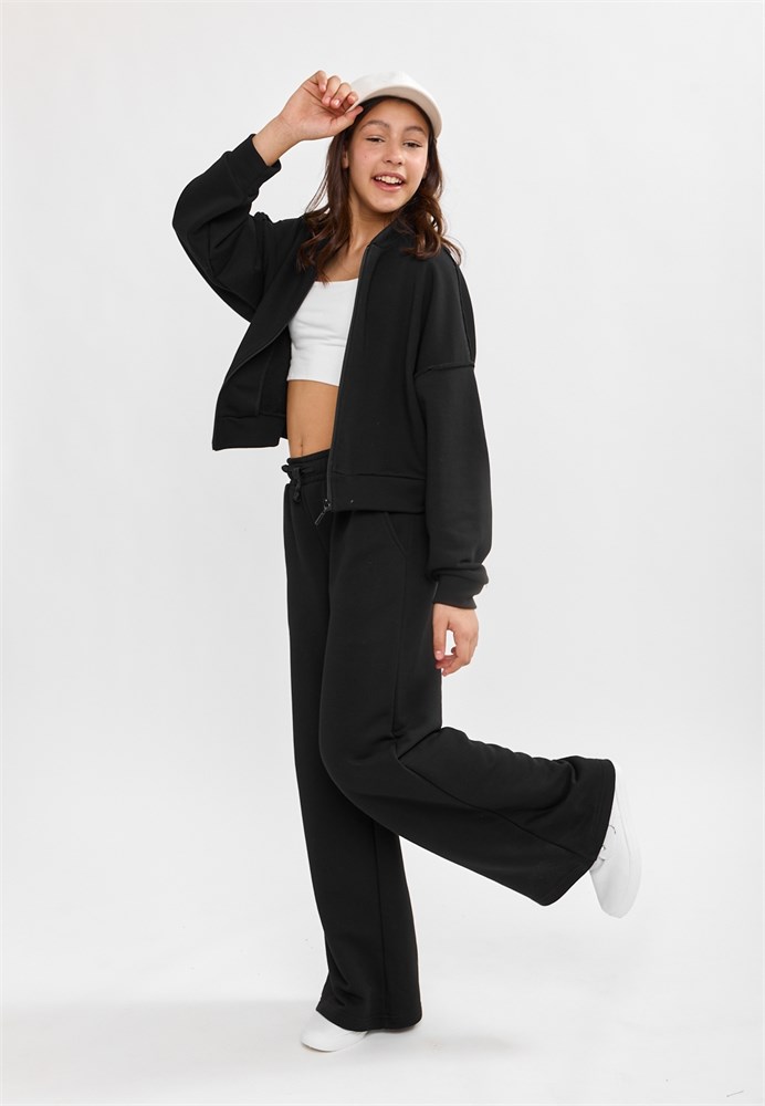 Толстовка для девочек на молнии черная - это неотъемлемая часть гардероба каждого ребенка и станет отличным выбором для активных и стильных модниц на весну осень и в прохладную погоду. Толстовка зипка для девочки однотонная выполнена из мягкого петельного хлопкового трикотажа, а манжеты и пояс из трикотажного полотна кашкорсе. Худи для девочки черное с длинным рукавом с капюшоном, спущенная линия плеча, открытые швы, удобно садится на любую фигуру и обеспечивает тепло и комфорт. Толстовка для девочки подростка с капюшоном защитит от непогоды, а застежка на молнию добавляет практичности. Олимпийка на молнии черная удобна при смене одежды независимо от сезона и летом, и весной, и осенью. Спортивная однотонная кофта подходит как для прогулок, так и для занятий спортом. Толстовка из футера без начеса порадует своим теплым и мягким материалом, обеспечивая уют. Свитшот оверсайз, дарит детям свободу движений, позволяя бегать и играть в активные игры. Эта одежда гармонично впишется в гардероб девочки, идеально подход
