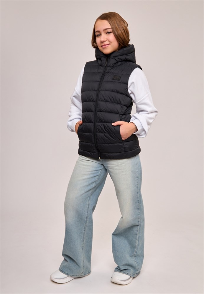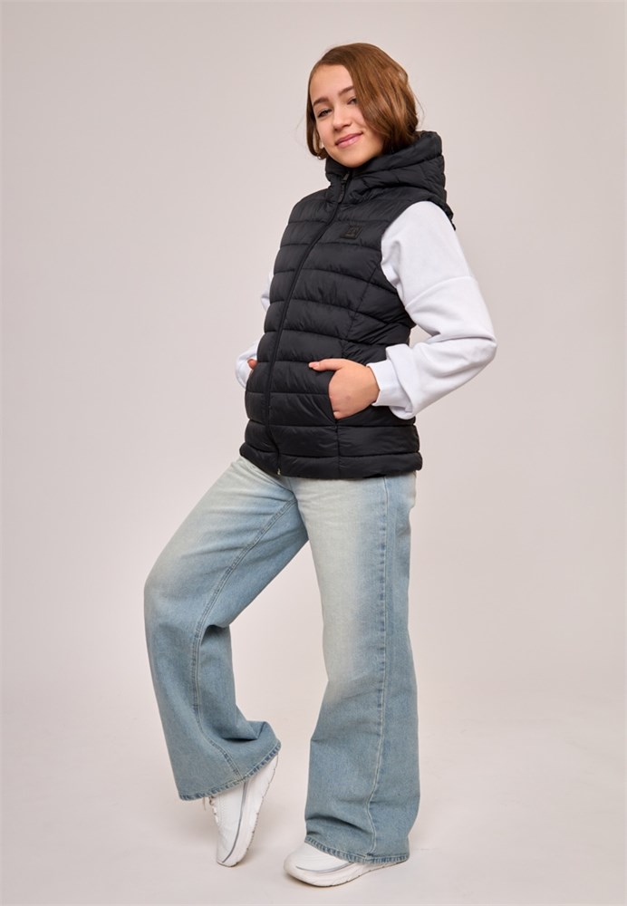 Легкий и невесомый демисезонный жилет для девочек подростков с капюшоном отлично подходит на весну и осень. Жилет демисезонный детский отличный вариант для прогулок, активных игр и повседневного использования. Жилетка утеплённая для девочки подростка изготовлена из 100% нейлона, что гарантирует ее долговечность и надежность. Стёганый демисезонный жилет для подростка имеет два наружных и один внутренний карман. Утеплитель – искусственный пух. Плотность утеплителя 80 гр./кв. м. Температурный режим от +5 до +18 градусов, в зависимости от поддёвы и теплообмена ребёнка.
