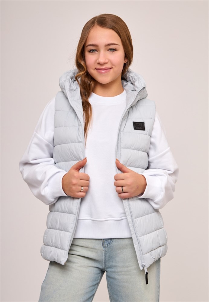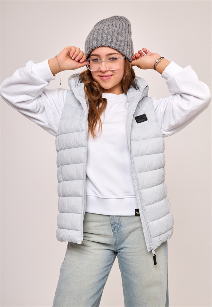 Легкий и невесомый демисезонный жилет для девочек подростков с капюшоном отлично подходит на весну и осень. Жилет демисезонный детский отличный вариант для прогулок, активных игр и повседневного использования. Жилетка утеплённая для девочки подростка изготовлена из 100% нейлона, что гарантирует ее долговечность и надежность. Стёганый демисезонный жилет для подростка имеет два наружных и один внутренний карман. Утеплитель – искусственный пух. Плотность утеплителя 80 гр./кв. м. Температурный режим от +5 до +18 градусов, в зависимости от поддёвы и теплообмена ребёнка.