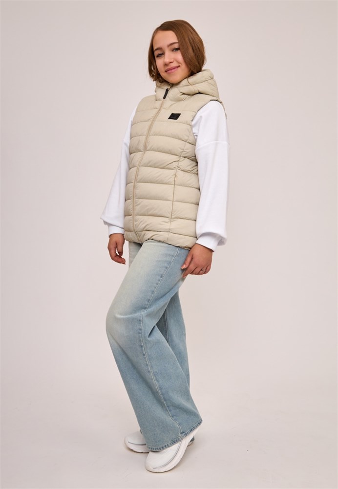 Легкий и невесомый демисезонный жилет для девочек подростков с капюшоном отлично подходит на весну и осень. Жилет демисезонный детский отличный вариант для прогулок, активных игр и повседневного использования. Жилетка утеплённая для девочки подростка изготовлена из 100% нейлона, что гарантирует ее долговечность и надежность. Стёганый демисезонный жилет для подростка имеет два наружных и один внутренний карман. Утеплитель – искусственный пух. Плотность утеплителя 80 гр./кв. м. Температурный режим от +5 до +18 градусов, в зависимости от поддёвы и теплообмена ребёнка.
