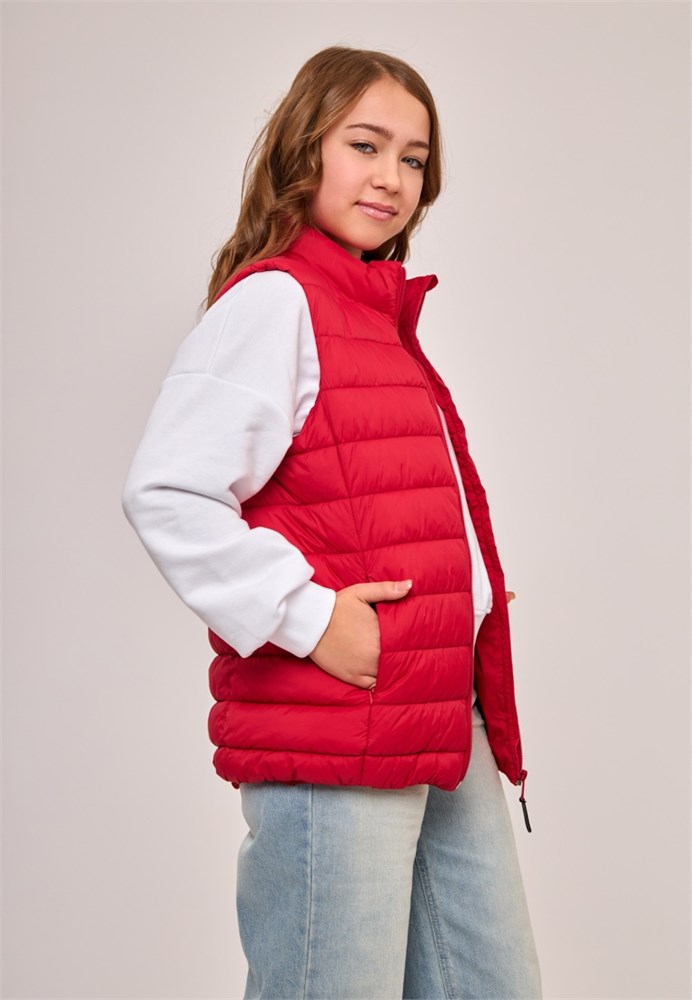 Легкий и невесомый демисезонный жилет для девочек подростков отлично подходит на весну и осень. Жилет демисезонный детский отличный вариант для прогулок, активных игр и повседневного использования. Жилетка утеплённая для девочки подростка изготовлена из 100% нейлона, что гарантирует ее долговечность и надежность. Стёганый демисезонный жилет для подростка имеет два наружных и один внутренний карман. Утеплитель – искусственный пух. Плотность утеплителя 80 гр./кв. м. Температурный режим от +5 до +18 градусов, в зависимости от поддёвы и теплообмена ребёнка.