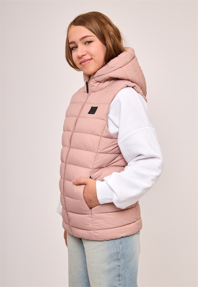 Легкий и невесомый демисезонный жилет для девочек подростков с капюшоном отлично подходит на весну и осень. Жилет демисезонный детский отличный вариант для прогулок, активных игр и повседневного использования. Жилетка утеплённая для девочки подростка изготовлена из 100% нейлона, что гарантирует ее долговечность и надежность. Стёганый демисезонный жилет для подростка имеет два наружных и один внутренний карман. Утеплитель – искусственный пух. Плотность утеплителя 80 гр./кв. м. Температурный режим от +5 до +18 градусов, в зависимости от поддёвы и теплообмена ребёнка.